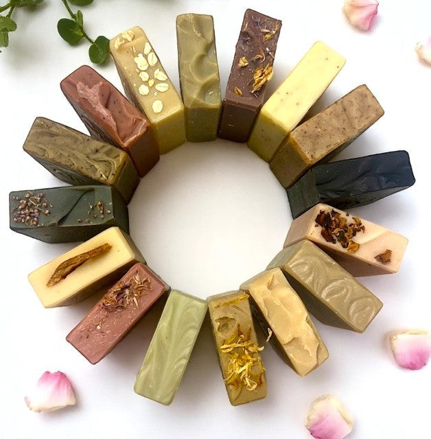 We colour our soaps using botanicals, fruits, clays, spices, plant infusions and vegetables — nature’s own palette.
